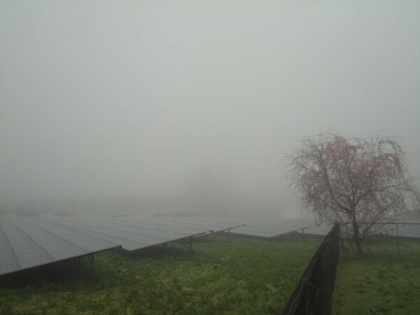 4月7日(日) 濃霧の朝、晴れようとしない霧の中には那須山も桜も。AM9:31 12℃