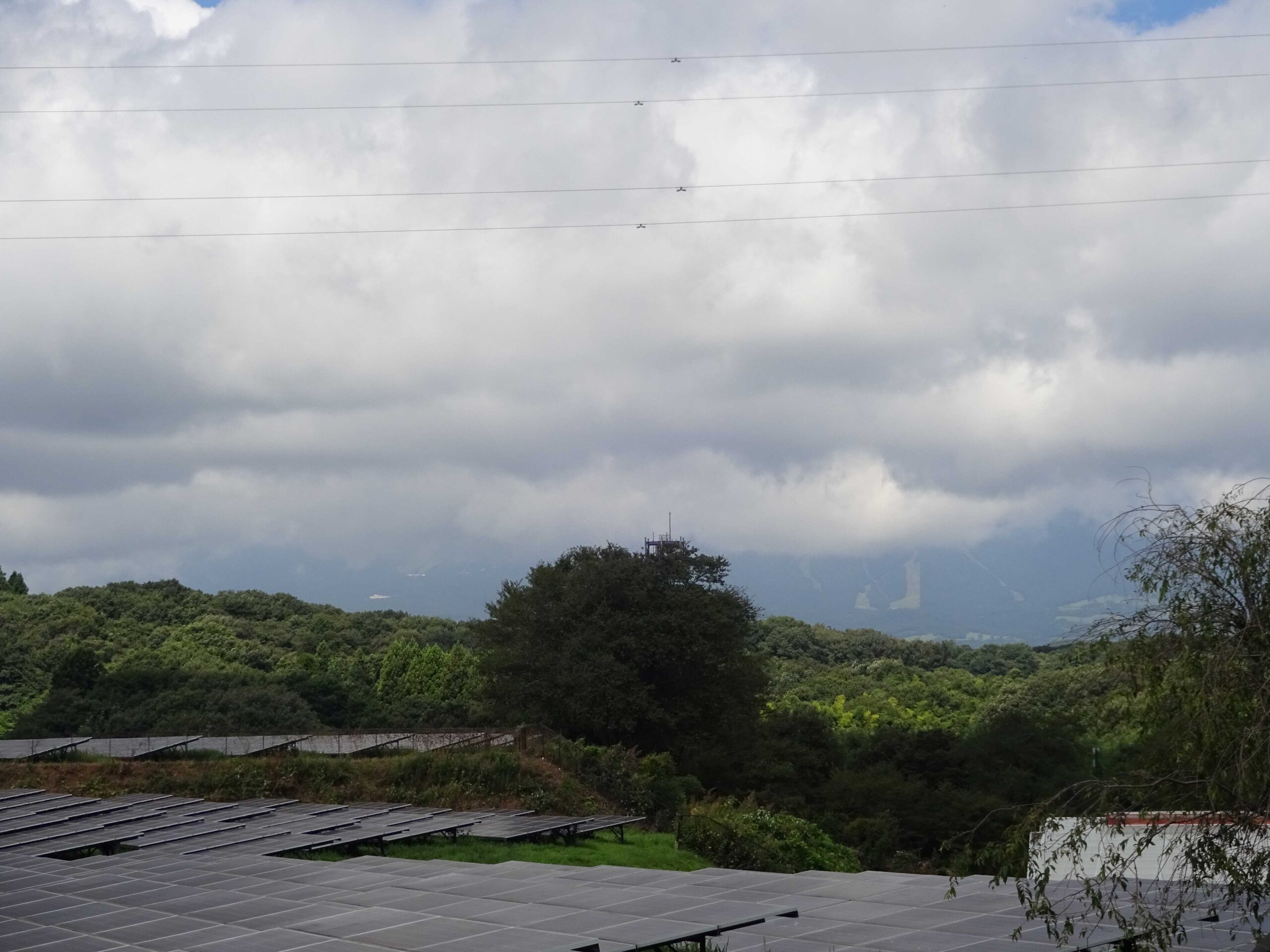 8月25日(金)明るい曇り空、モクモク雲の中から那須山ちらり。AM9:46 25℃