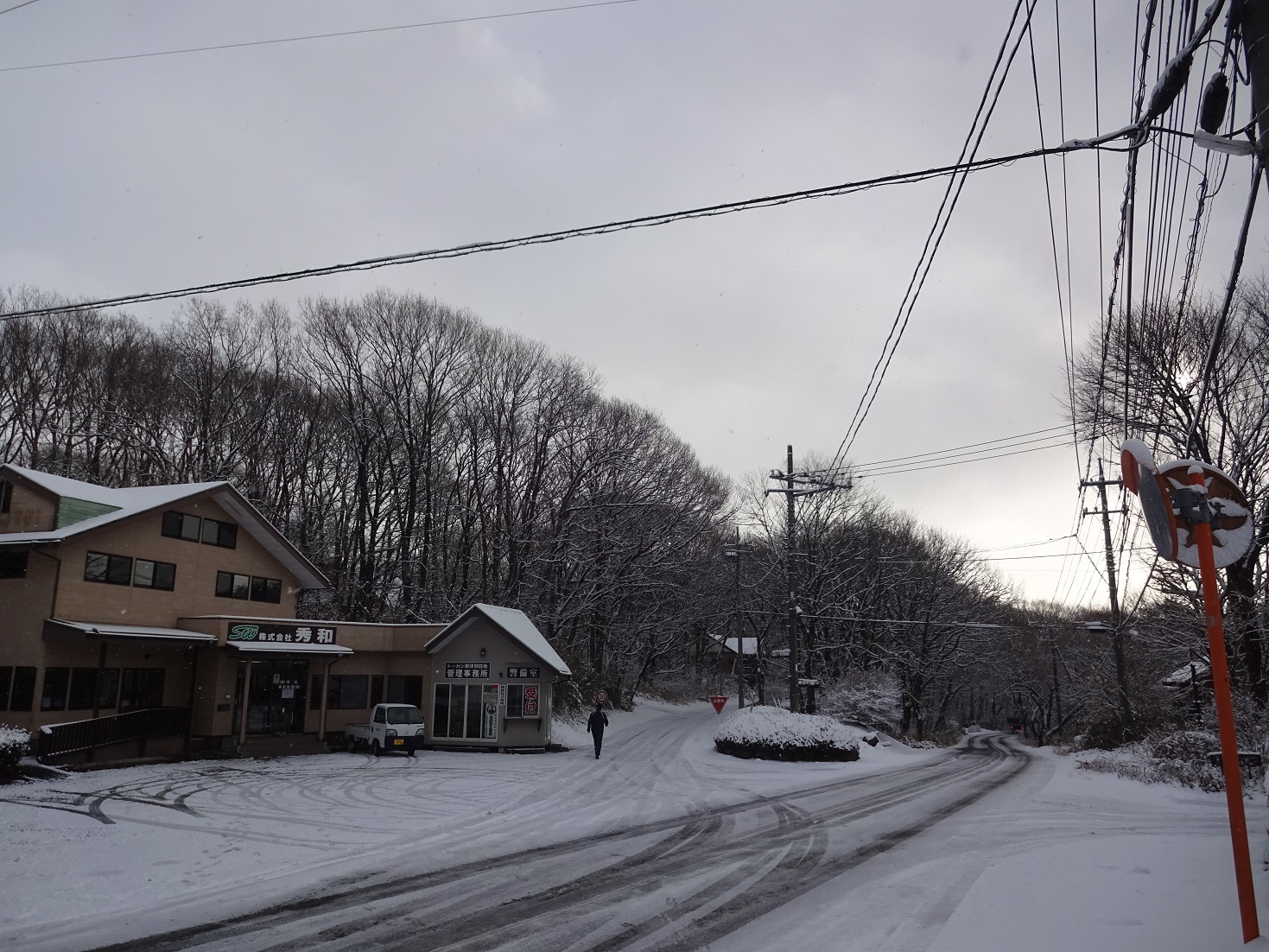 地内も約2㎝程度の雪が積もり真っ白で気温も低く路面は凍結しています。やっ