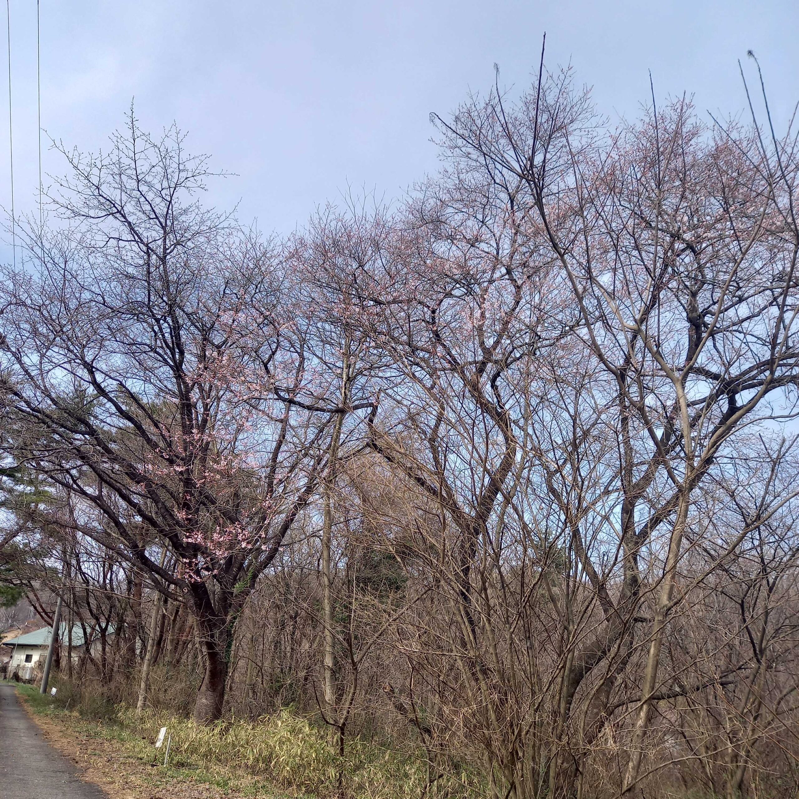 もう少し時間が掛かりそうです。今朝は大きな桜の木にピンク色の気配が窺えて