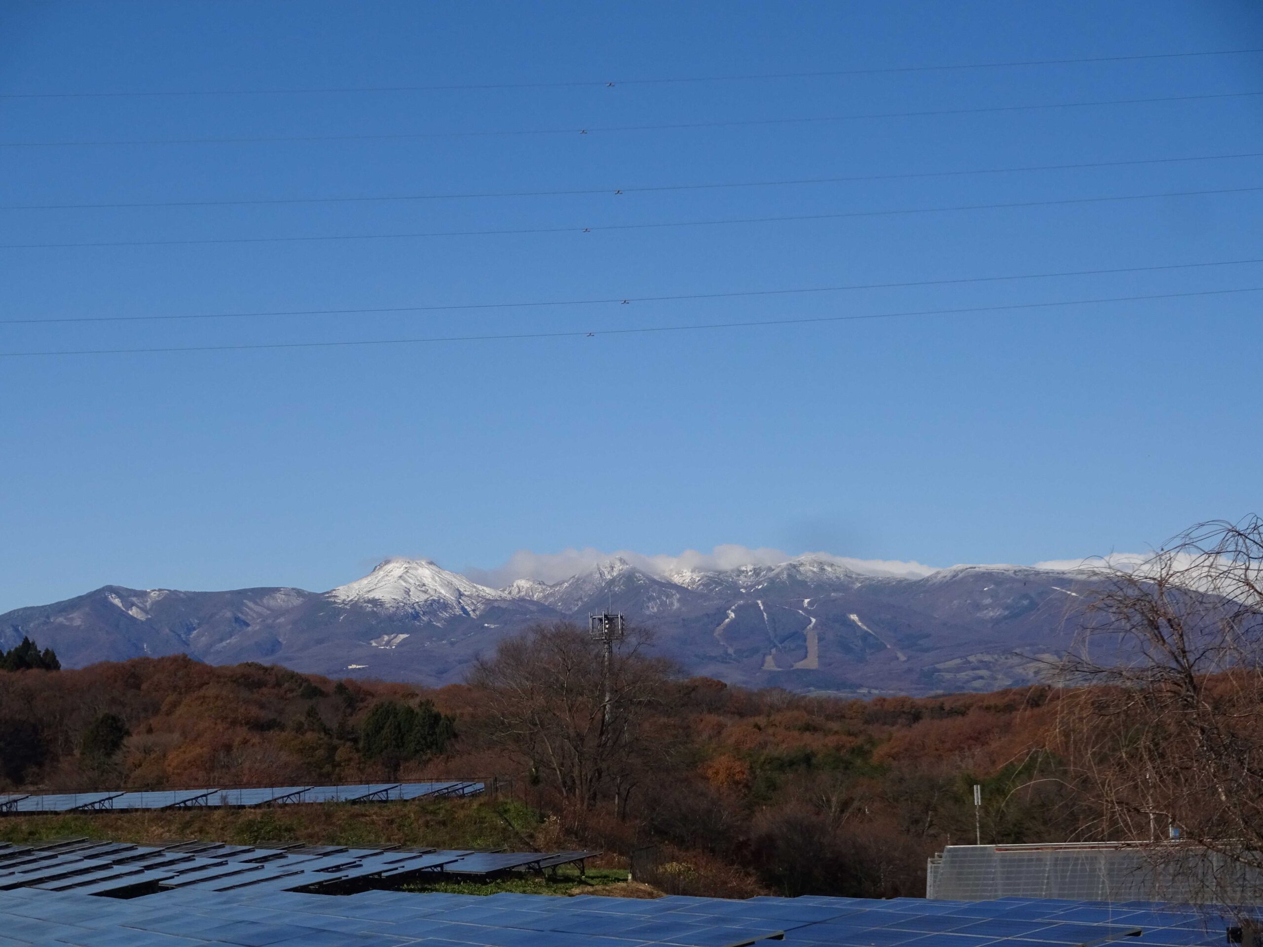 11月25日(月)雲も無く、雪化粧した那須連山、茶臼岳が富士山?AM9:49 7℃