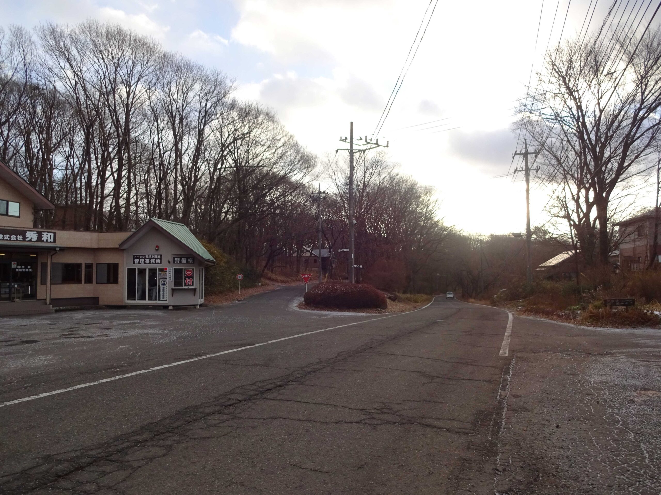 吹きかけるようにパラパラと粉雪。道路の端にはサラサラの雪が溜まって白く