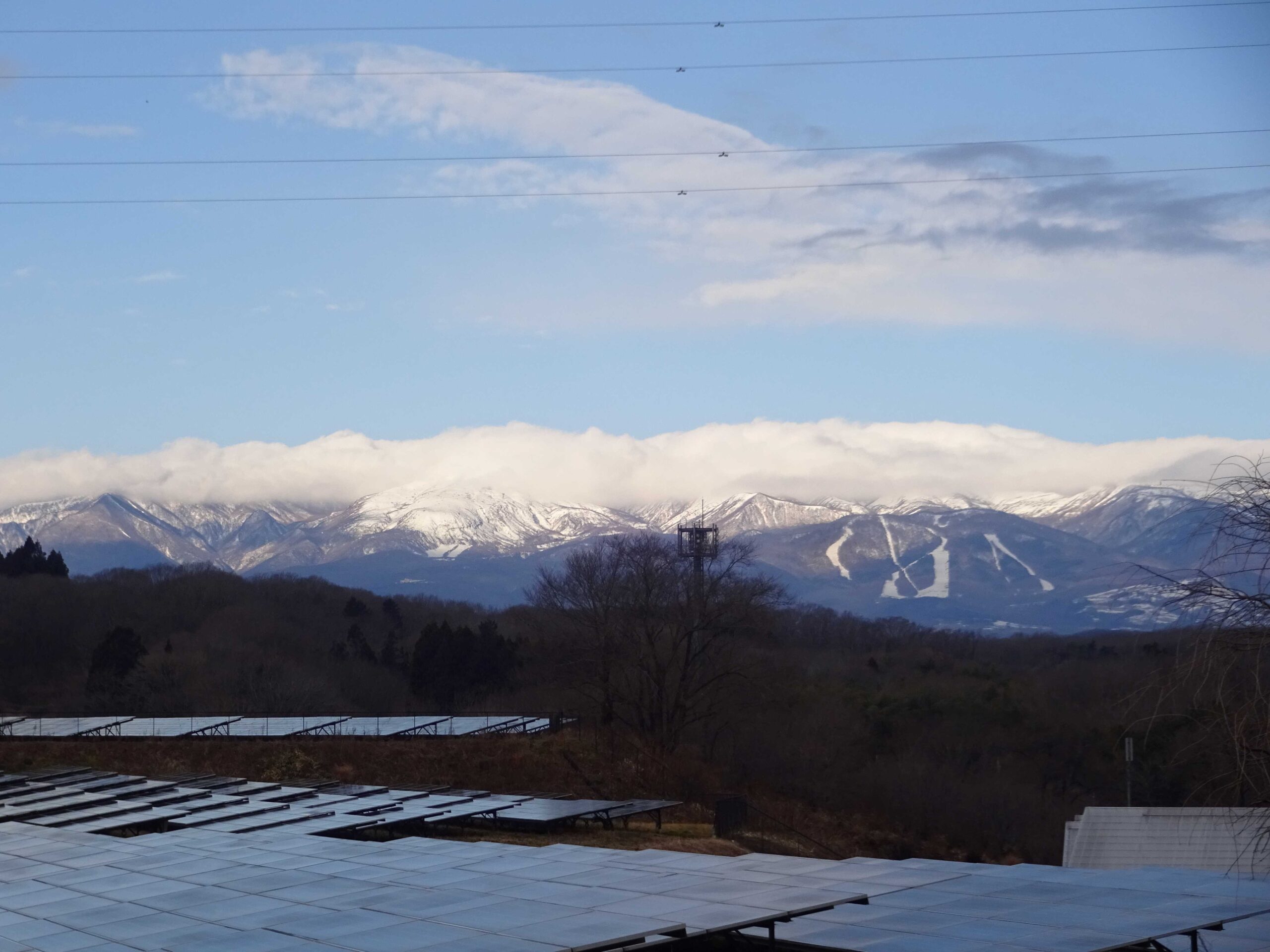 1月21日(火)昨日より肌寒く、那須山と青空雲は帯のように伸び。AM9:35 4℃