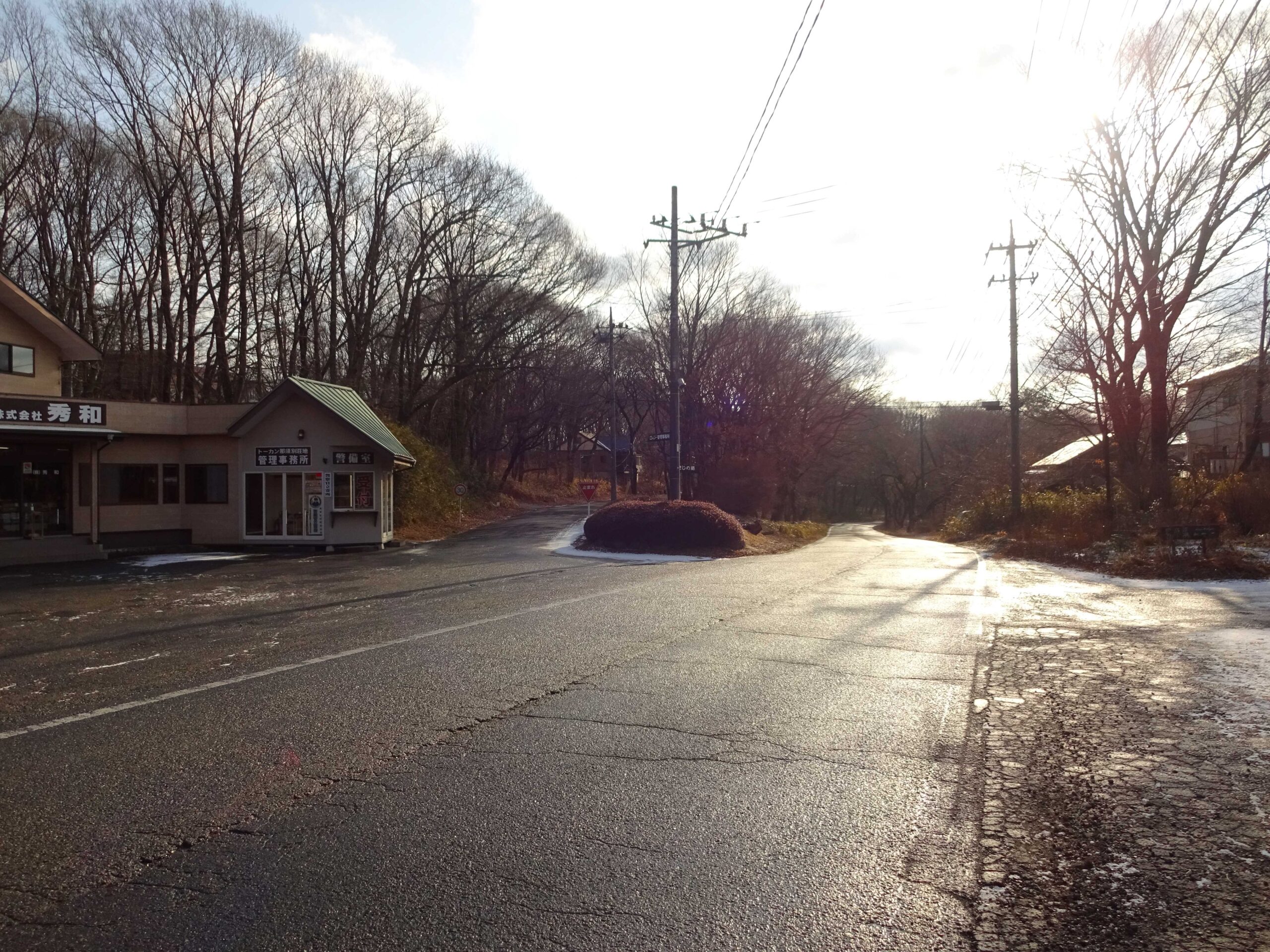 昨日ほどの冷え込みではありませんが、場内の道路は薄っすら白くなっています