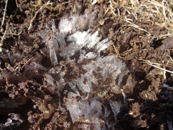 3月18日(火) ふきのとうの横には霜柱、春と冬が一緒です。