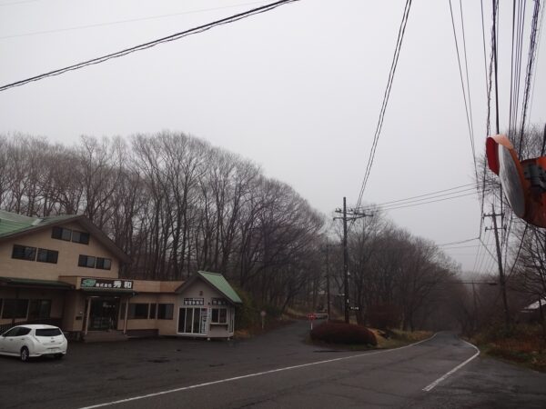 別荘地内も雲の中に居るかのような真っ白な風景で霧雨が降っています。昨今の暴風