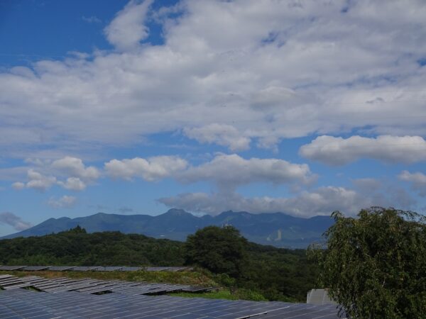 8月15日(金) 青い空と白い雲と那須山。いい風景ですね。 AM8:35 23℃