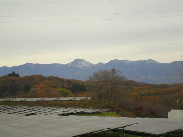 11月13日(木)曇り空に立体感ある那須山、薄っすら残る雪が寒々と。AM9:22 8℃