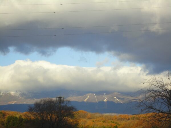 11月22日(土) 雲がかかっていても白い雪がちょっとだけ見える那須山。AM8:30 7℃