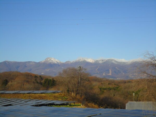11月29日(土)雲一つ無い青空の下、那須山の峰々は薄っすら雪化粧。AM9:36 6℃