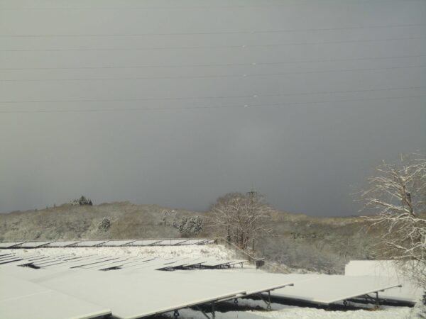 12月4日(木)起床したらいきなりの雪景色、那須山はしっかり降雪中。AM9:10 0℃