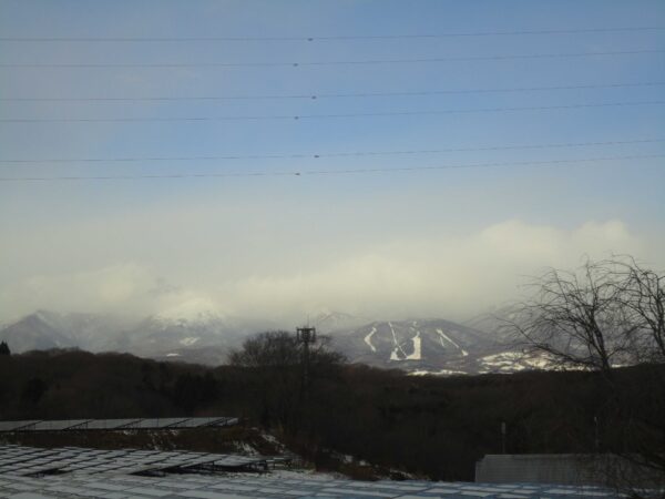 12月5日(金)積雪の那須山に雪雲が煙のように、青空との境が曖昧。AM9:26 2℃