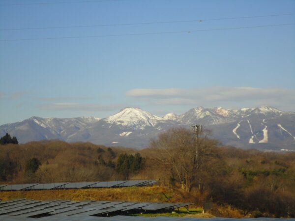12月8日(月) 澄んだ空気の中、雪の茶臼岳の三角形が大きく見えて。AM9:33 6℃