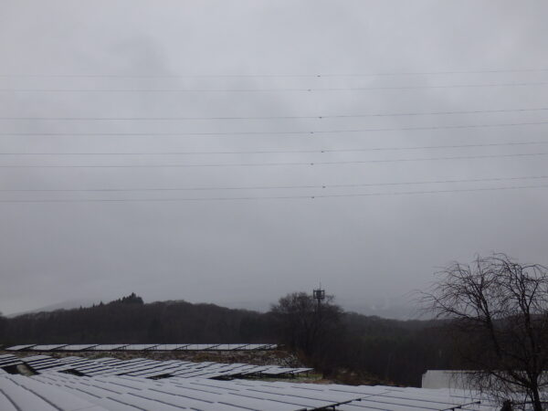 12月14日(日) 那須山は雨雲に隠れて見えません。雪降ってるのかな。AM8:50 1℃