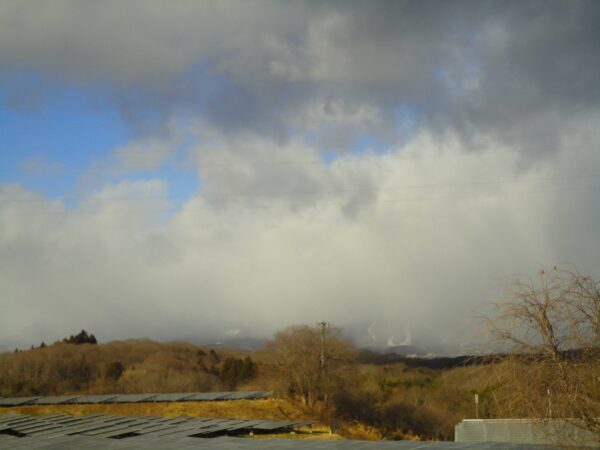 1月8日(木)煙のように高く昇る雪雲、那須山を包み隠すようにモクモクと。AM9:18 4℃