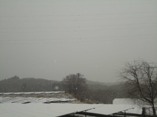 1月31日(土)静かに舞うように降る雪、那須山の麓豊原まで真っ白に。AM9:36 −1℃
