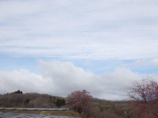 4月5日(日)那須山は雲に隠れてますけど青空が見え始めてきてます。AM8:30 16℃