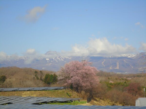 4月6日(月)厚い雲が通り抜けて那須山は僅かな残雪、桜は満開間近。AM9:30 13℃